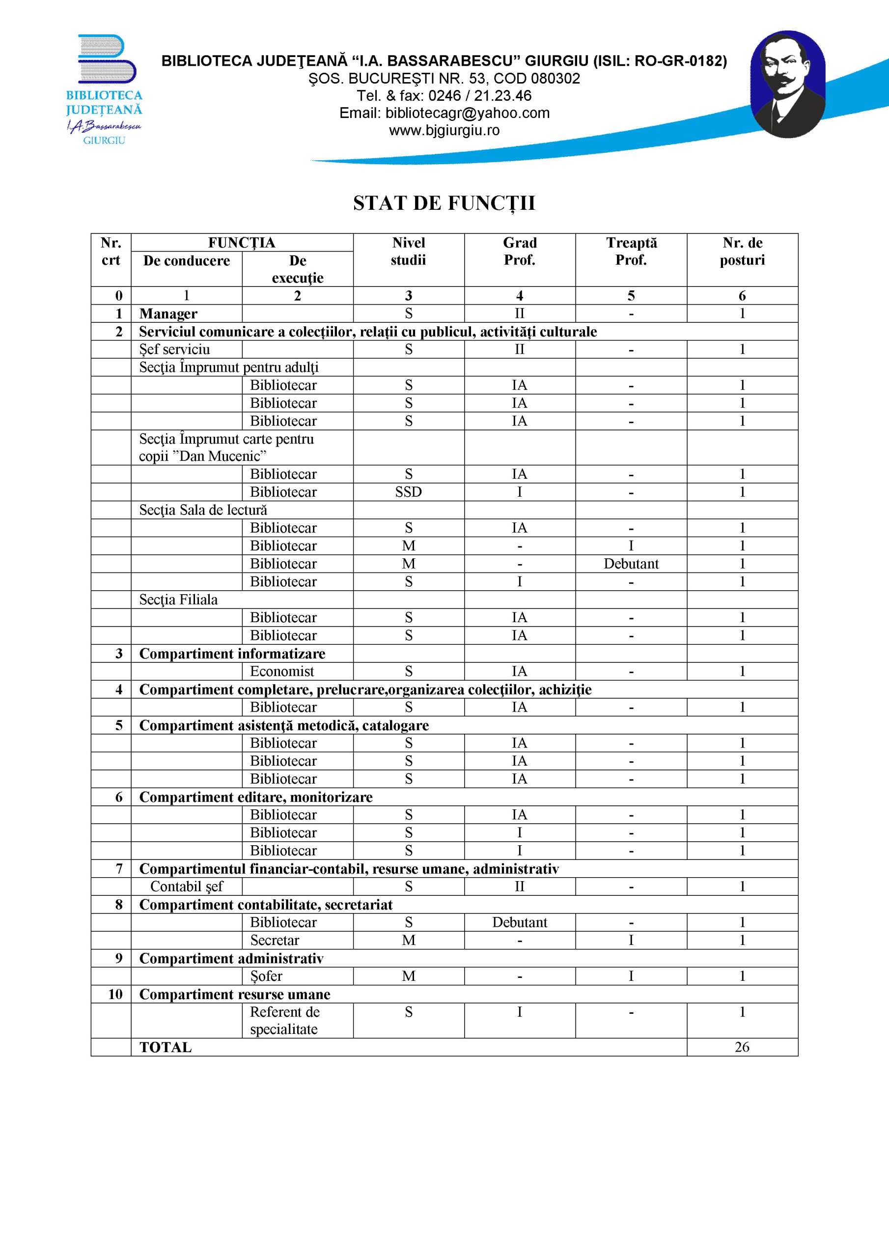 Regulament de organizare si functionare al Bibliotecii Judetene Giurgiu